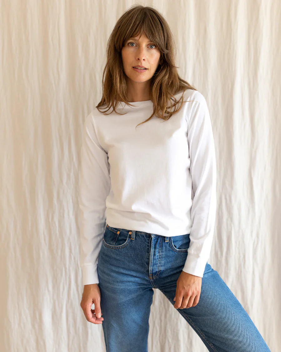 Is a wardrobe even complete without a white, long-sleeve cotton crew top? Perfect for year-round layering, Audrey White is one of our best-sellers. Audrey White customers come back to us again and again because we have given the fabric weight a little extra oomph, to ensure that see-through issues are a thing of the past.